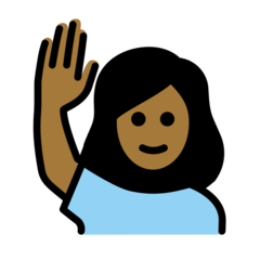 | ความหมาย | ผู้หญิงยกมือ: โทนผิวสีแทน |